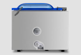 La cámara de vacío está compuesta de dos elementos: la campana y la cámara. La campana de acrílico permite observar en todo momento el proceso de envasado y poder determinar si es necesario detener el proceso (por ejemplo, porque un líquido esté a punto de salirse del envase).